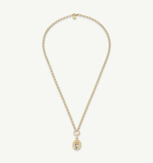 Playful British idioms reimagined in fine jewellery. Crafted in 18ct gold with hand-painted champlevé enamel and diamonds. The Devil Is In The Details is a witty ode to the art of saying one thing while meaning another.