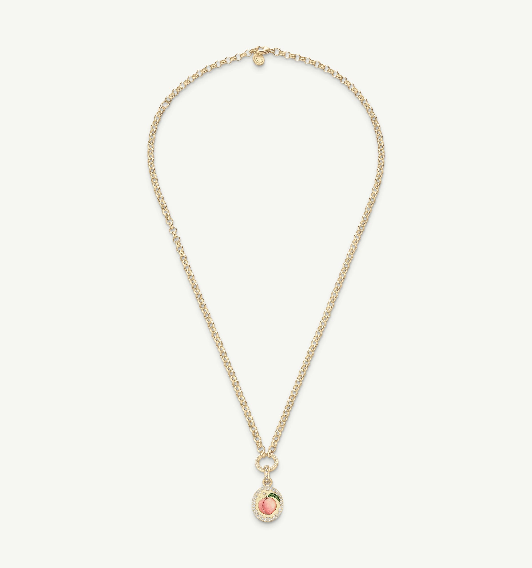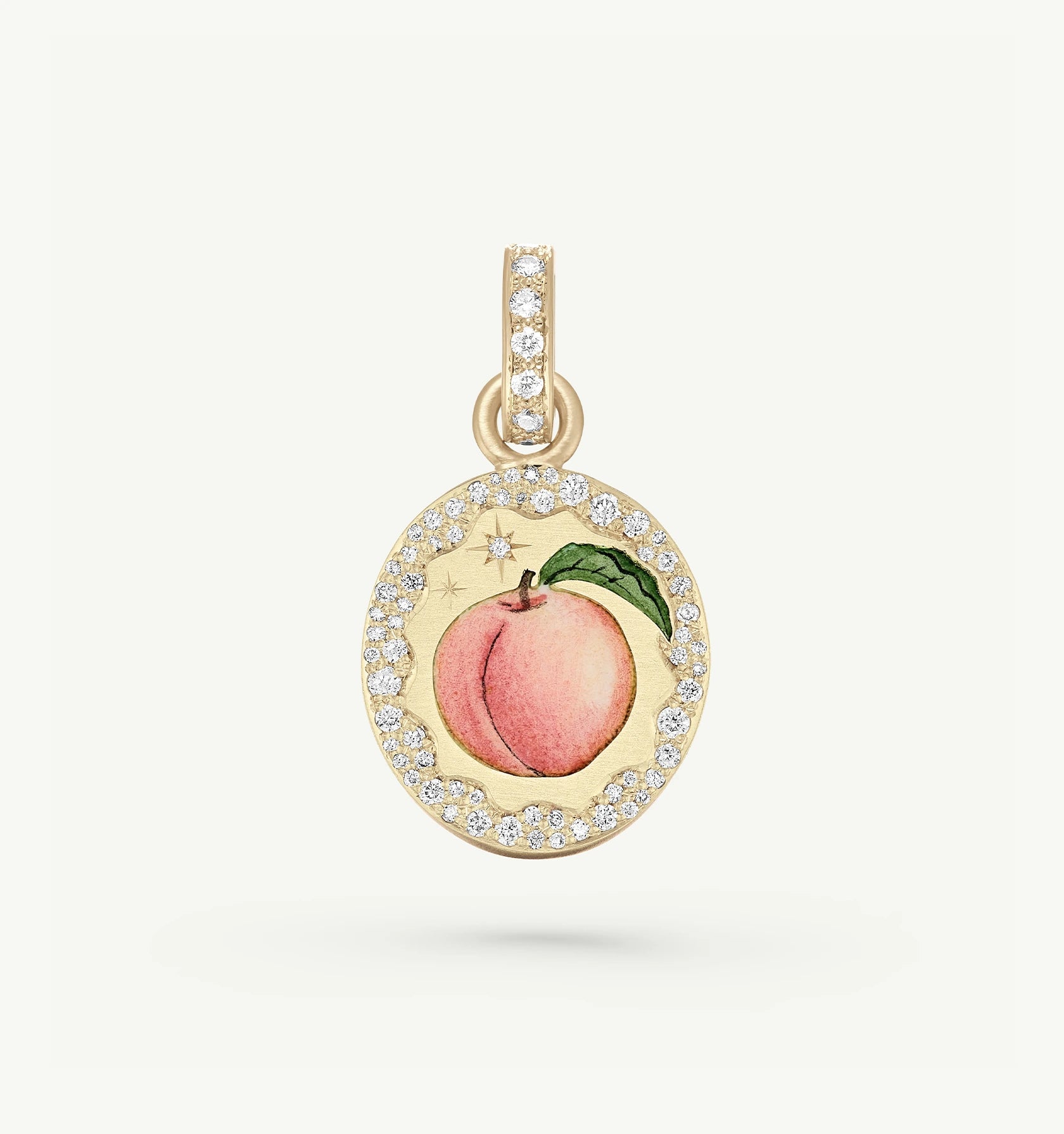 The sweet and blushing peach is a story of abundance and delight. A juicy peach speaks of summer at its height, overflowing with promise. This pendant is a tribute to the bounty of life, to the riches found in love, in nature, and in yourself.