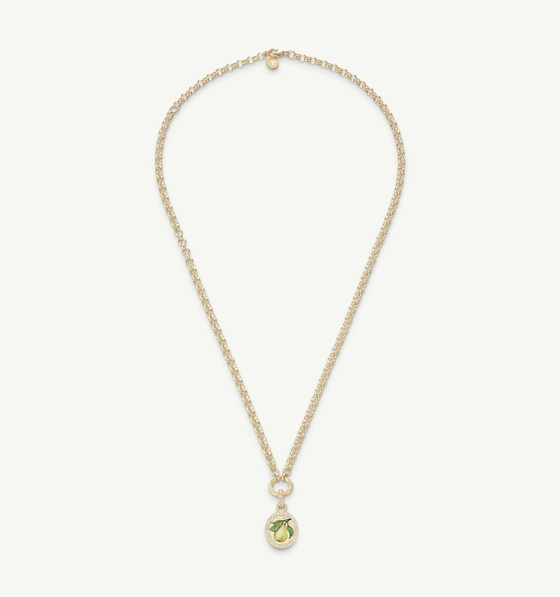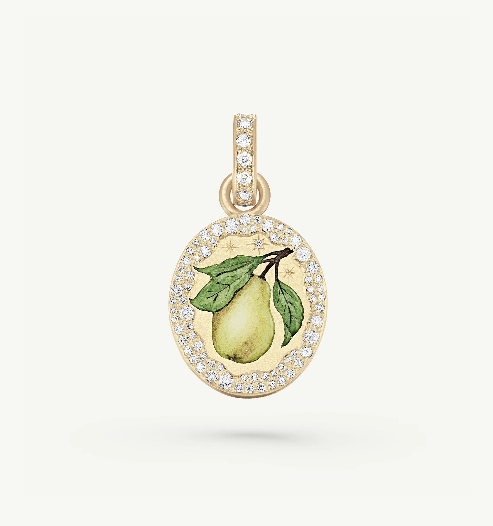 Its soft curves hand-painted in champlevé enamel, the pear is a symbol of feminine beauty and power. Not flawless, but glowing, the pear reminds us that true beauty is in individuality. Character is always more attractive than perfection.