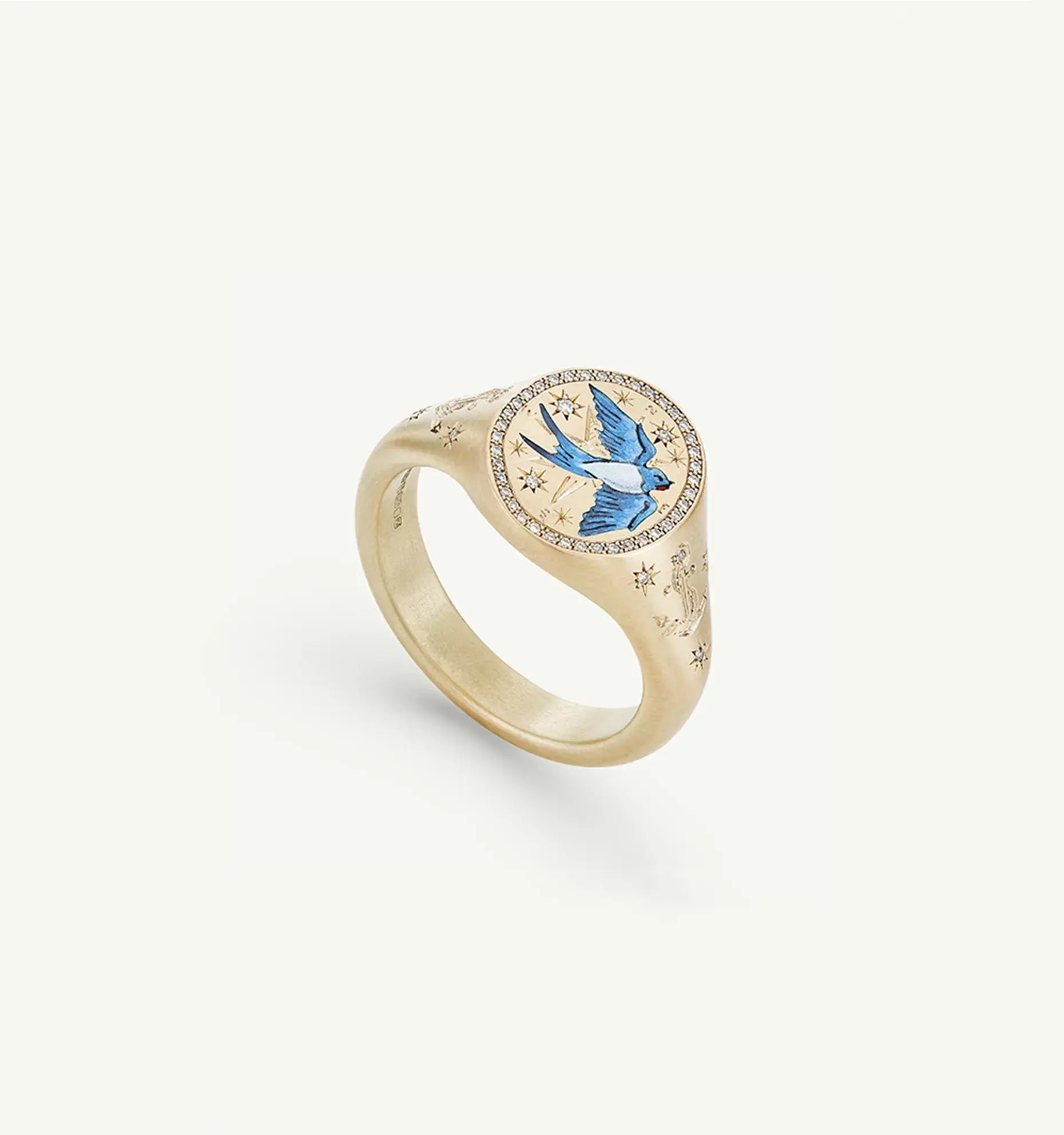 At the heart of the Adventurer ring, a hand-enamelled swallow takes flight, a sailor’s symbol of freedom and exploration. Behind it, an engraved compass speaks of all the directions life could take you.