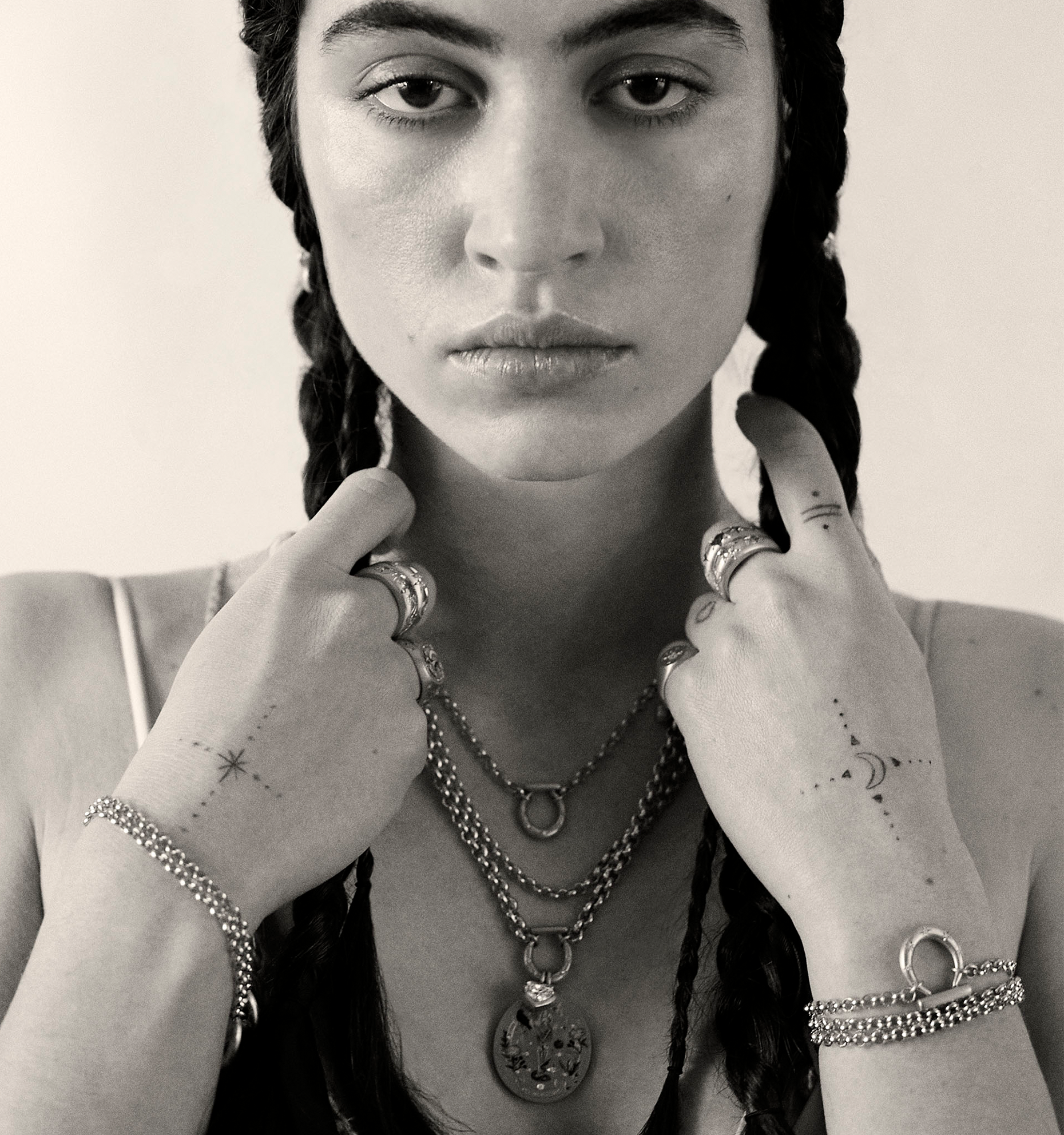 Cece’s Lucky Star collection is a storied twist on a timeless style. The tactile, domed Gypsy ring becomes a tattooed canvas, with hand-engraved detailing and precious stones. Symbols of luck, love, and magic create a personal totem of a classic piece.
