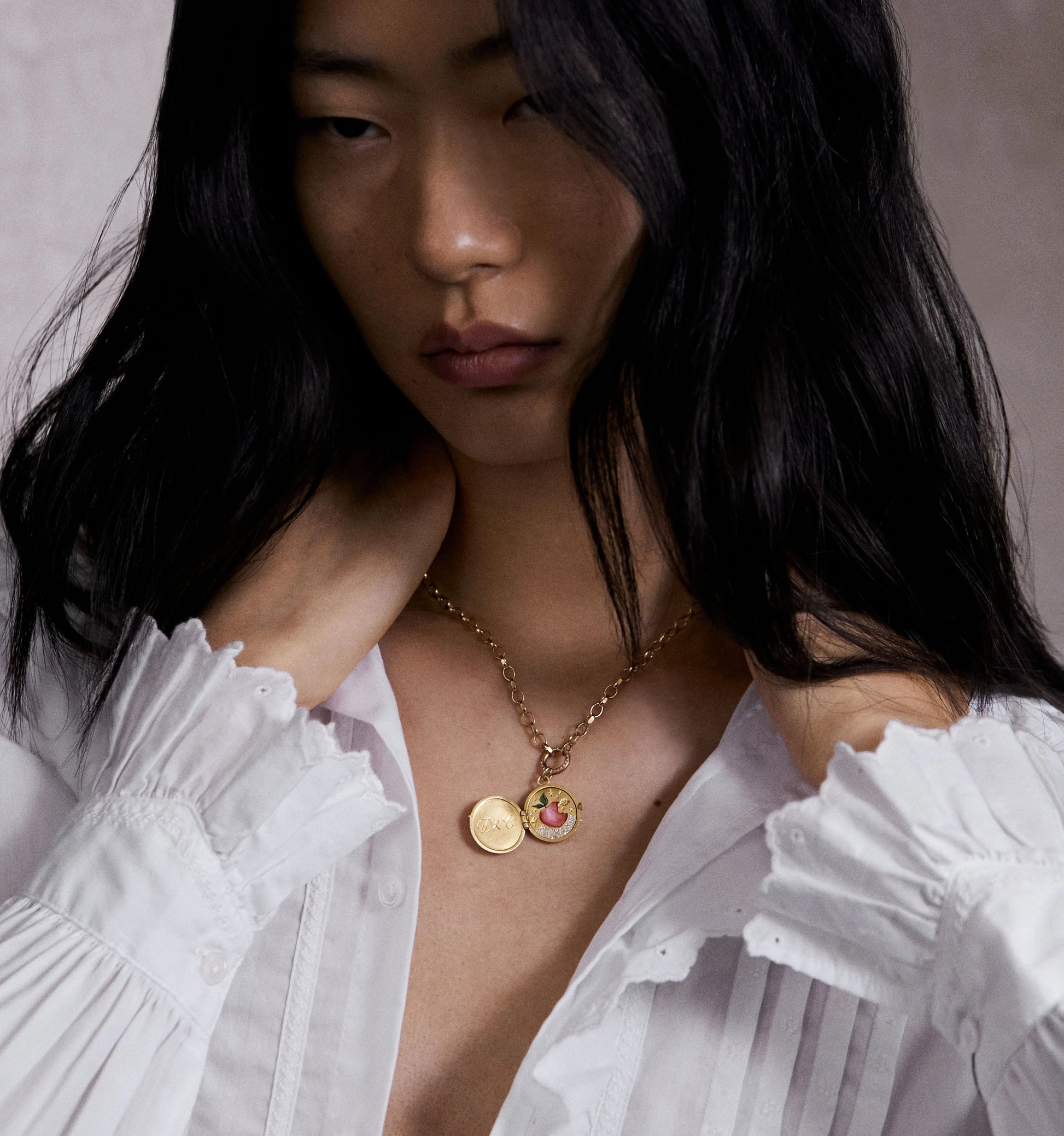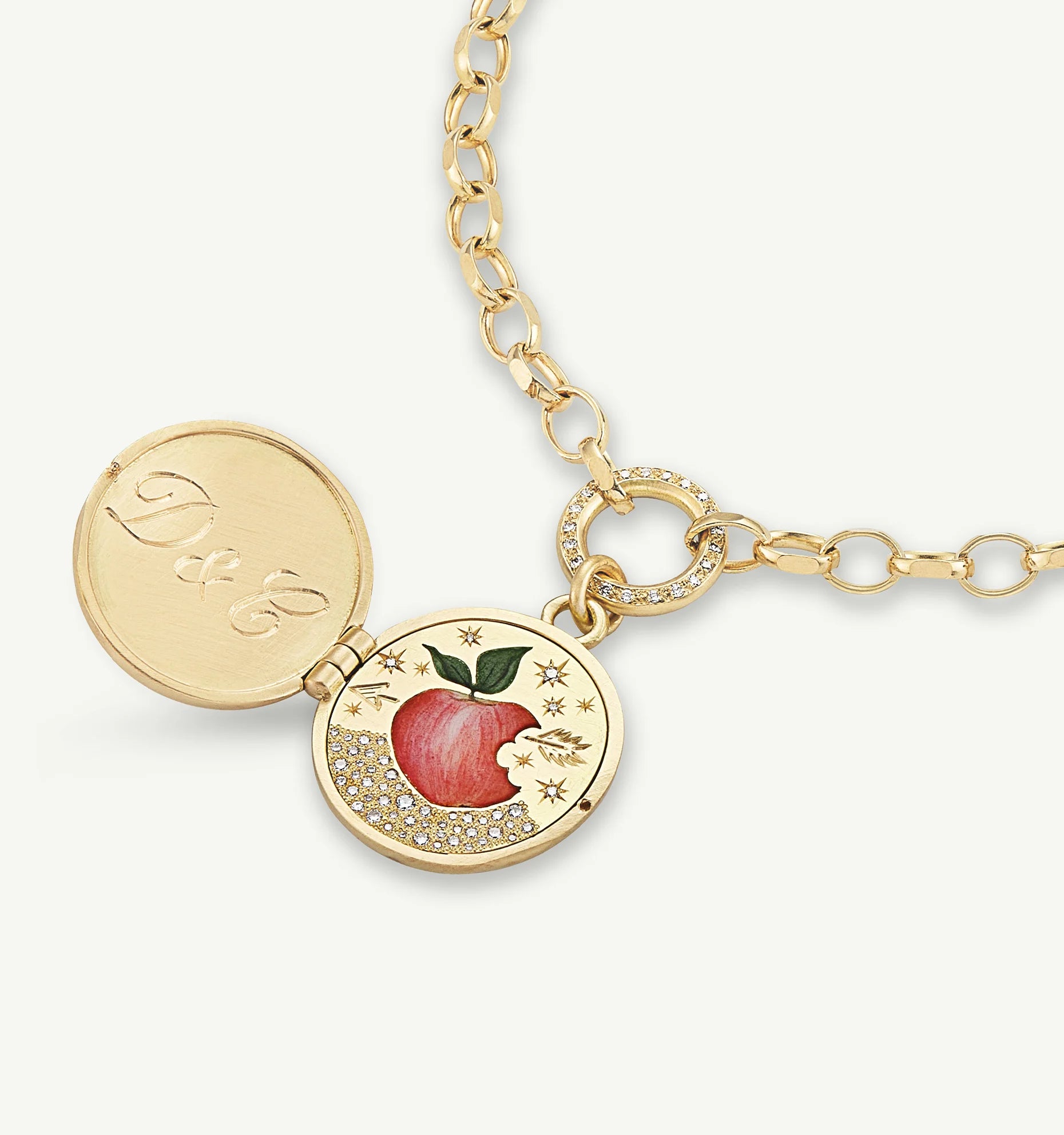 Depicting the sensual, all-consuming exuberance of love, the hand-enamelled Apple Of My Eye Locket makes a beguiling invitation.