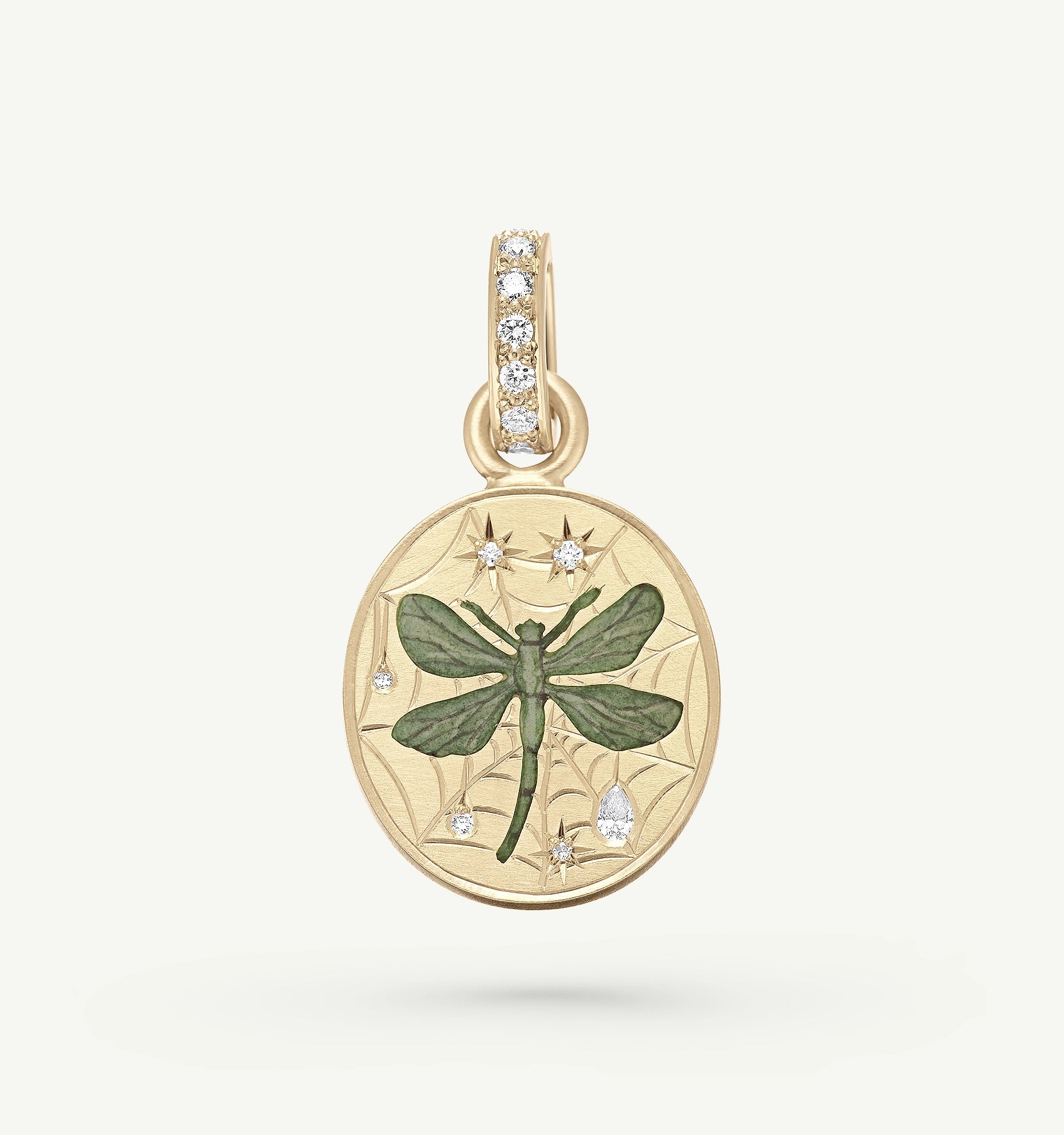 Crafted in 18ct gold with hand-painted enamel and diamonds, the Dragonfly Pendant is hung from a diamond-set clip and ready for your choice of chain.