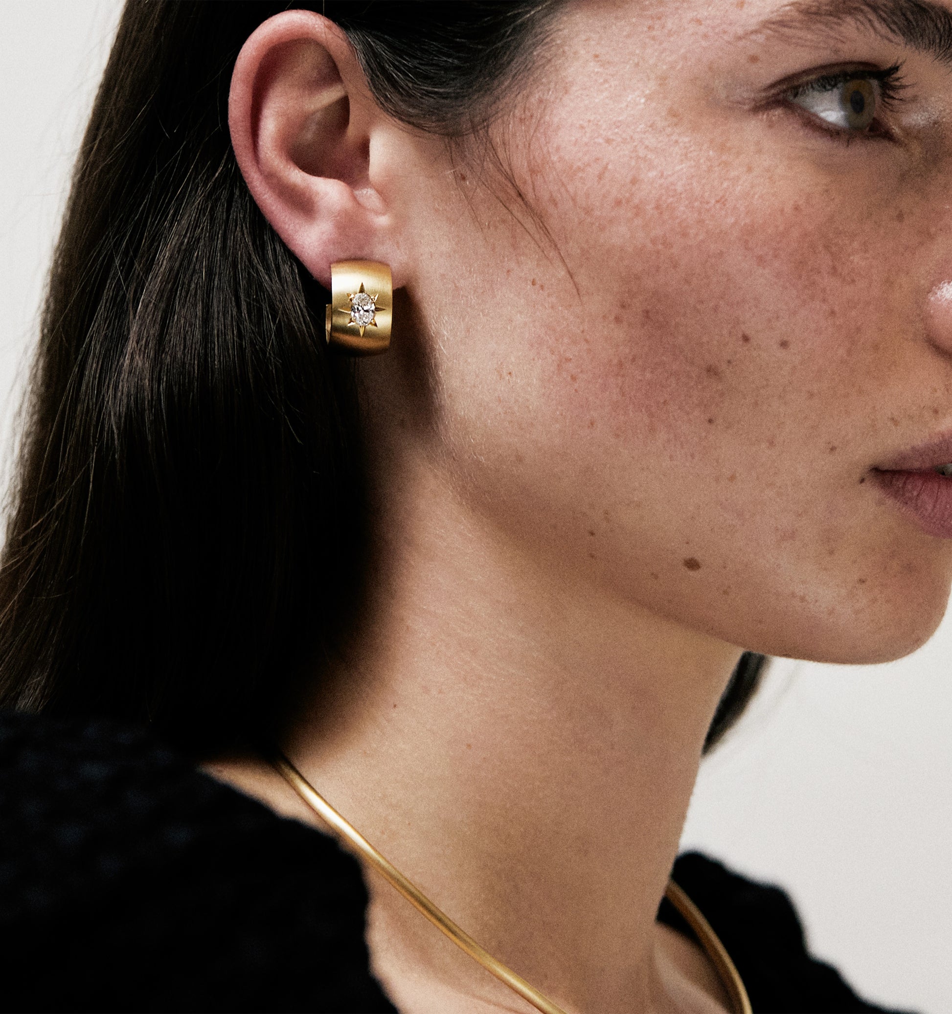 How to better glorious gold? By pairing it with diamonds. A pair of extraordinary 0.5ct oval-shaped diamonds are star-set into the surface of the earrings, a reimagining of a vintage setting style most often used for accent-size stones.
