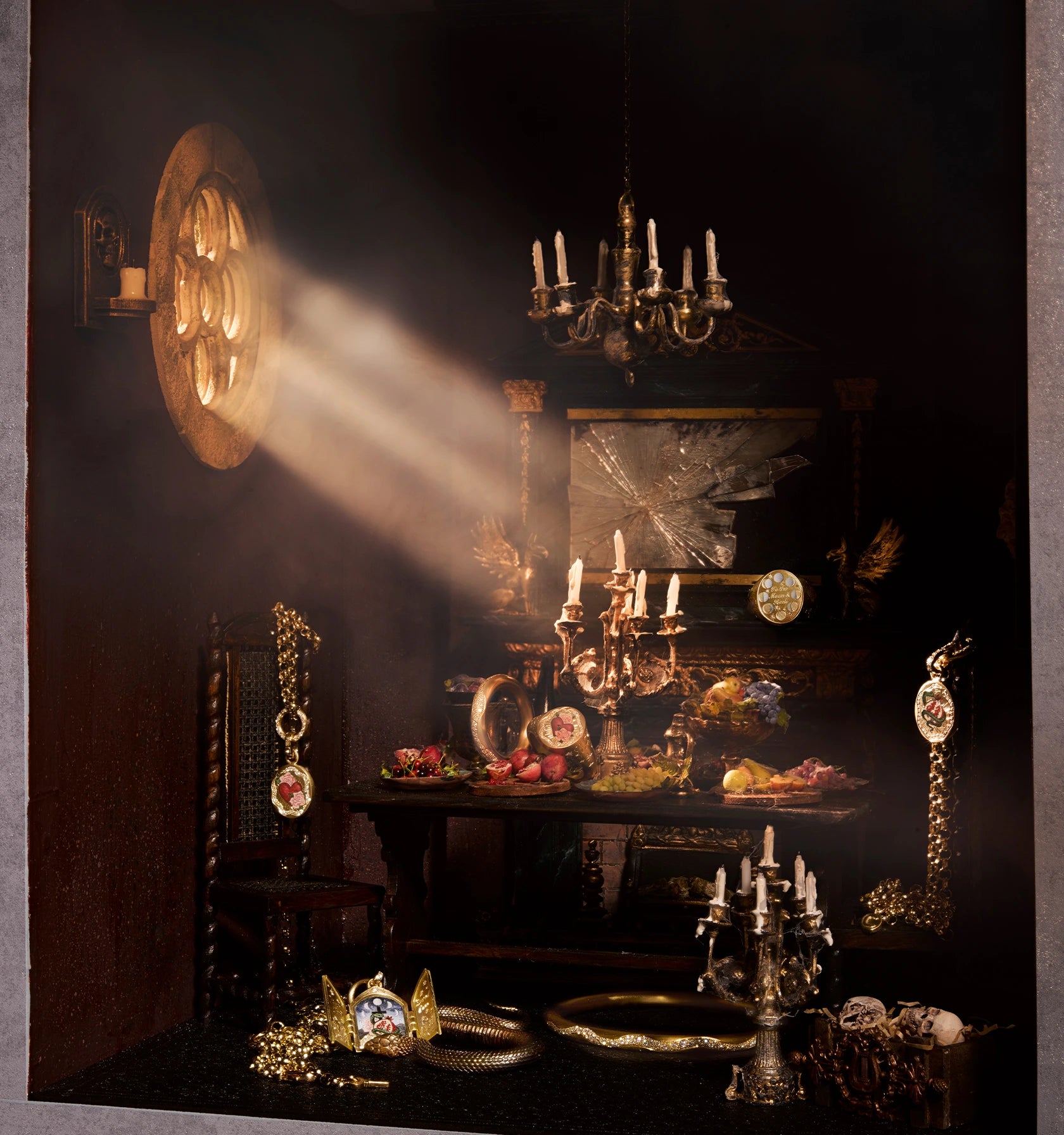 Each ring starts its journey in Cece’s London workshop, made by hand and forged from beautifully deep and rich recycled 18ct yellow gold. The ring is then passed on to one of London’s most renowned enamelers where every design is hand engraved and then hand painted using fire and crushed glass to create each design perfectly. Finally, the ring is embellished with pearls and star-set diamonds to complete each miniature scene. This meticulous and precious process means every ring is individual to the wearer, a mystical heirloom that will last generations.