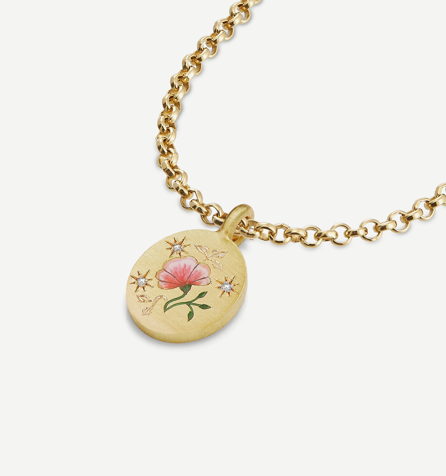 Each enamelled piece is hand-painted, so every one differs slightly in its own unique way. Your ring, pendant, or charm is individual to you.