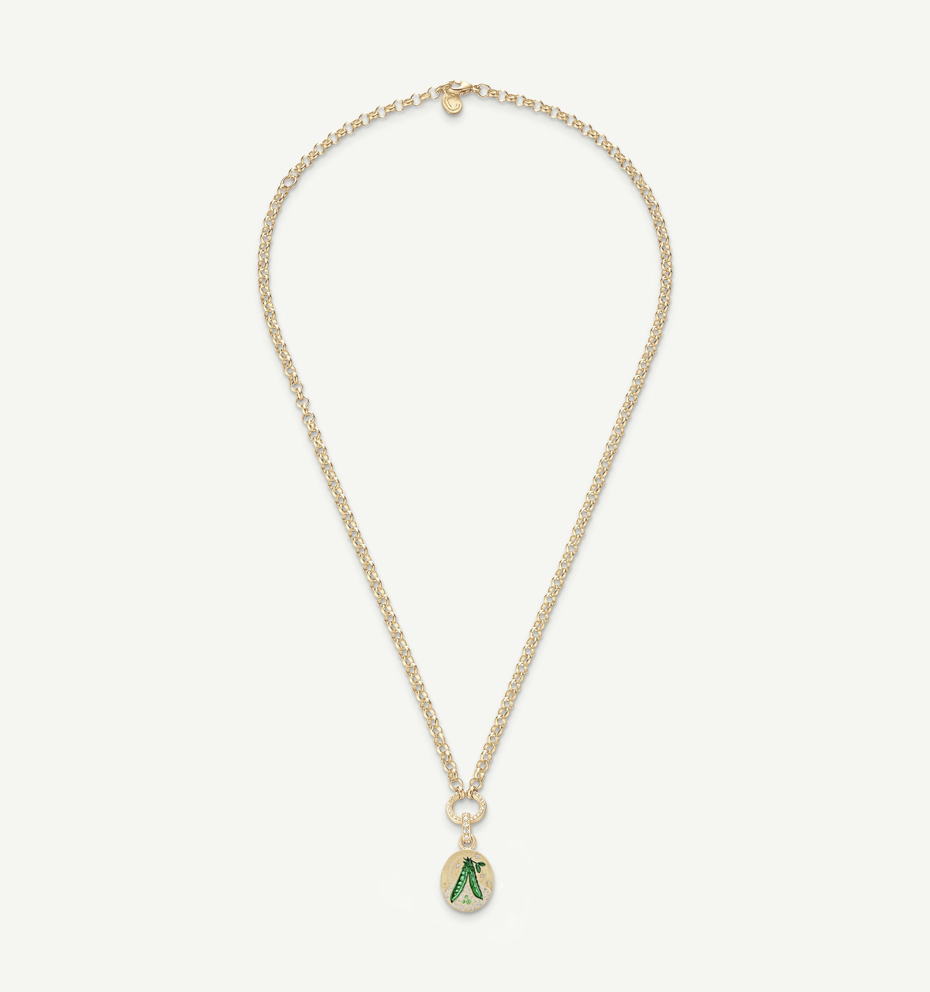 A reminder to revel in the little things that bring you joy, this sweet pendant is crafted in 18ct gold with hand-painted enamel and diamonds. Finished with engraving detail, star-set diamonds and a pavé clip.