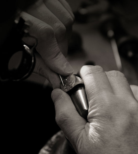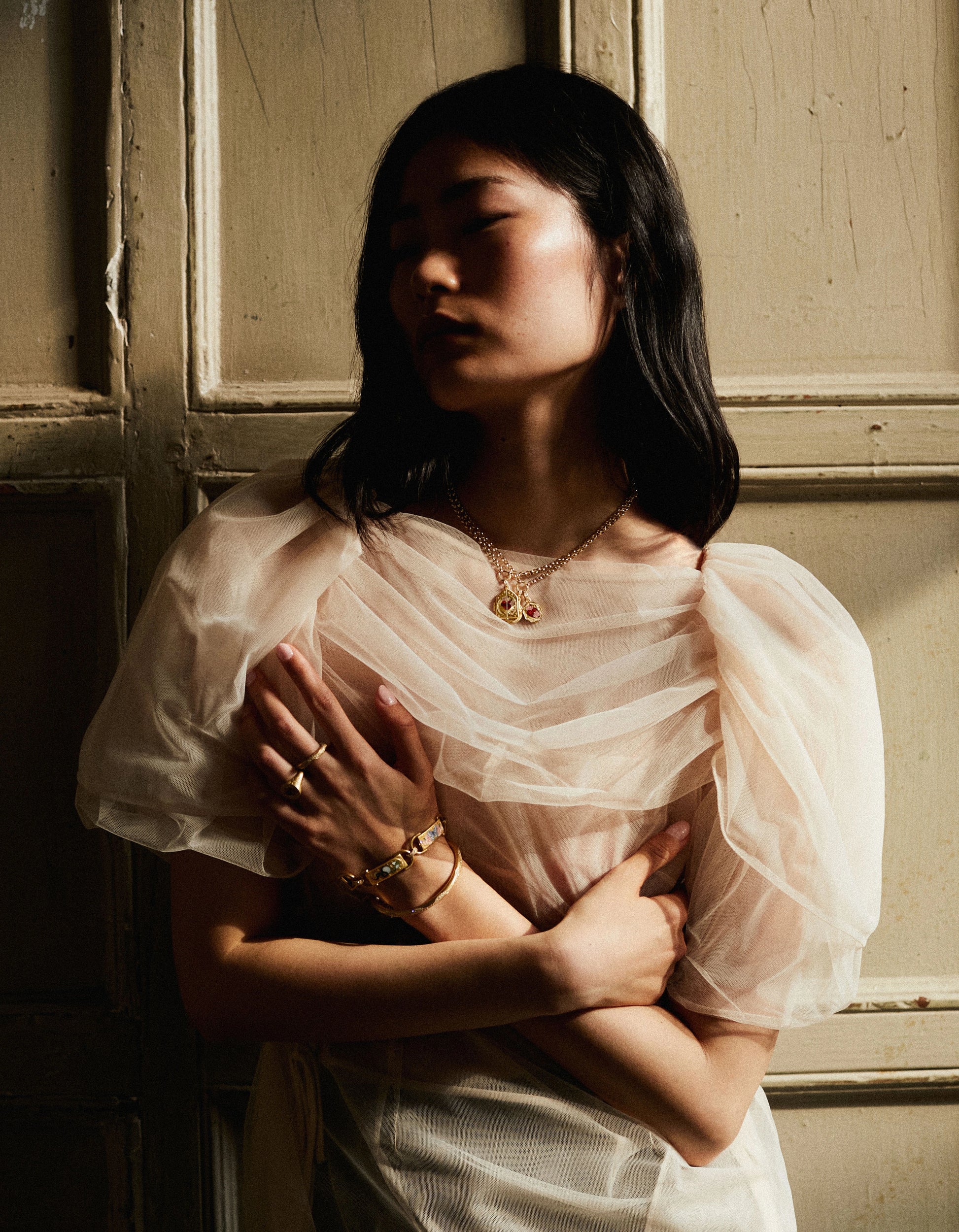 Each ring starts its journey in Cece’s London workshop, made by hand and forged from beautifully deep and rich recycled 18ct yellow gold. The ring is then passed on to one of London’s most renowned enamelers where every design is hand engraved and then hand painted using fire and crushed glass to create each design perfectly. Finally, the ring is embellished with pearls and star-set diamonds to complete each miniature scene. This meticulous and precious process means every ring is individual to the wearer, a mystical heirloom that will last generations.